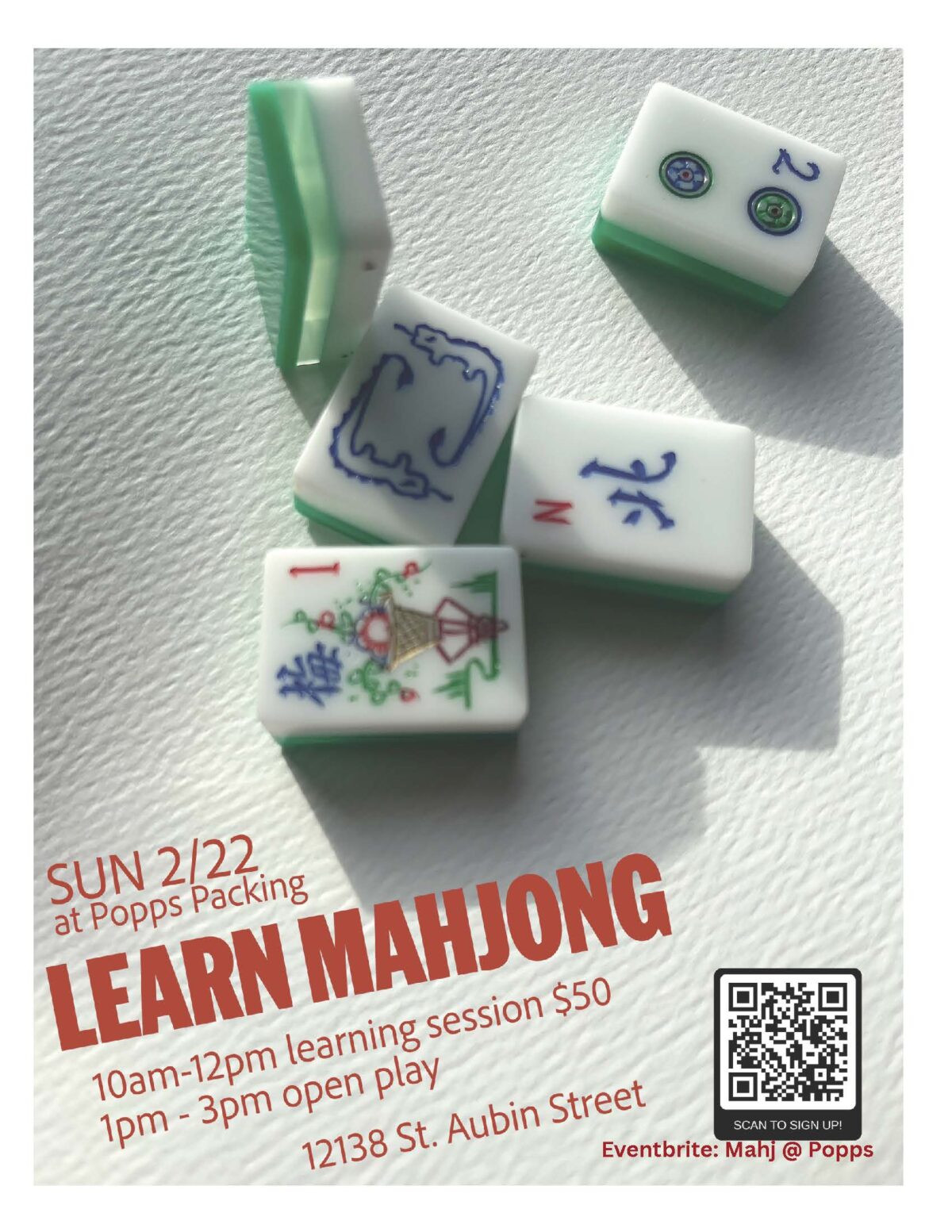 Join Faina Lerman & Yuen Hom for a fun Mahjong lesson at Popps Packing! Limited spots—reserve now!