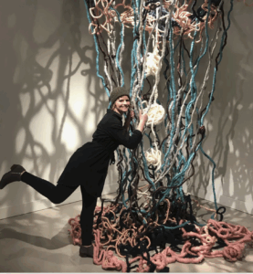 She often uses raw materials, but finds herself attempting to merge the organic compositions with synthetic ones. Natural spaces are where she finds solace and mediation. However she realizes it’s easy to get caught up in the day’s obligations and demands. Through the process of combining these two contrasting materials she explores ideas of equilibrium and unbalance within her sculptural work.
